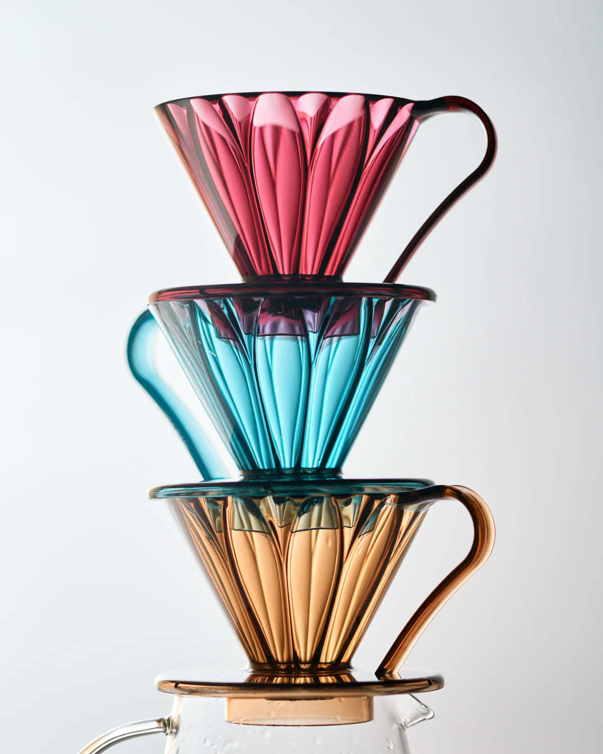 Available Colors and Sizes The Cafec Tritan Flower Dripper comes in two sizes: Cup1 (perfect for 1-2 cups) and Cup4 (ideal for 2-4 cups). It’s available in a range of eye-catching colors, including wine red, black, and clear (transparent) -so you can pick the perfect dripper to match your style.