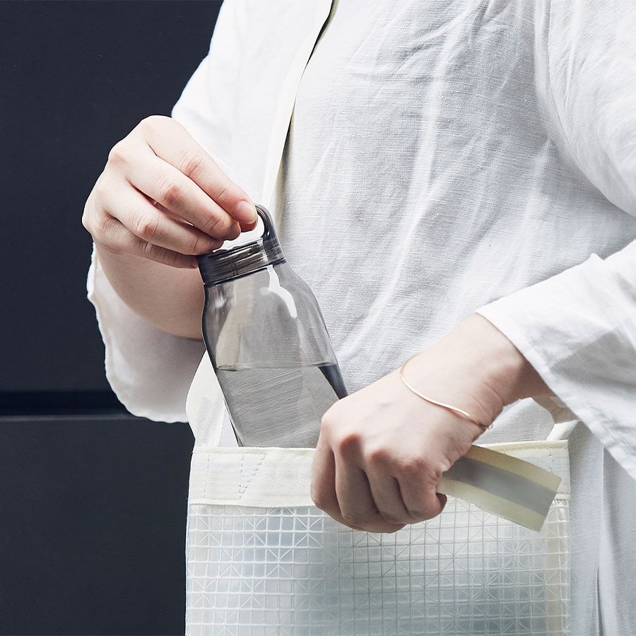 Lightweight and compact WATER BOTTLE lets you hydrate effortlessly. Made of high quality transparent copolyester, it is durable and scratch resistant. The lid opens with a single twist and has a handle that is comfortable to hold, making it convenient to carry around. The bottle's beautiful form and transparency stands out when you put water inside.